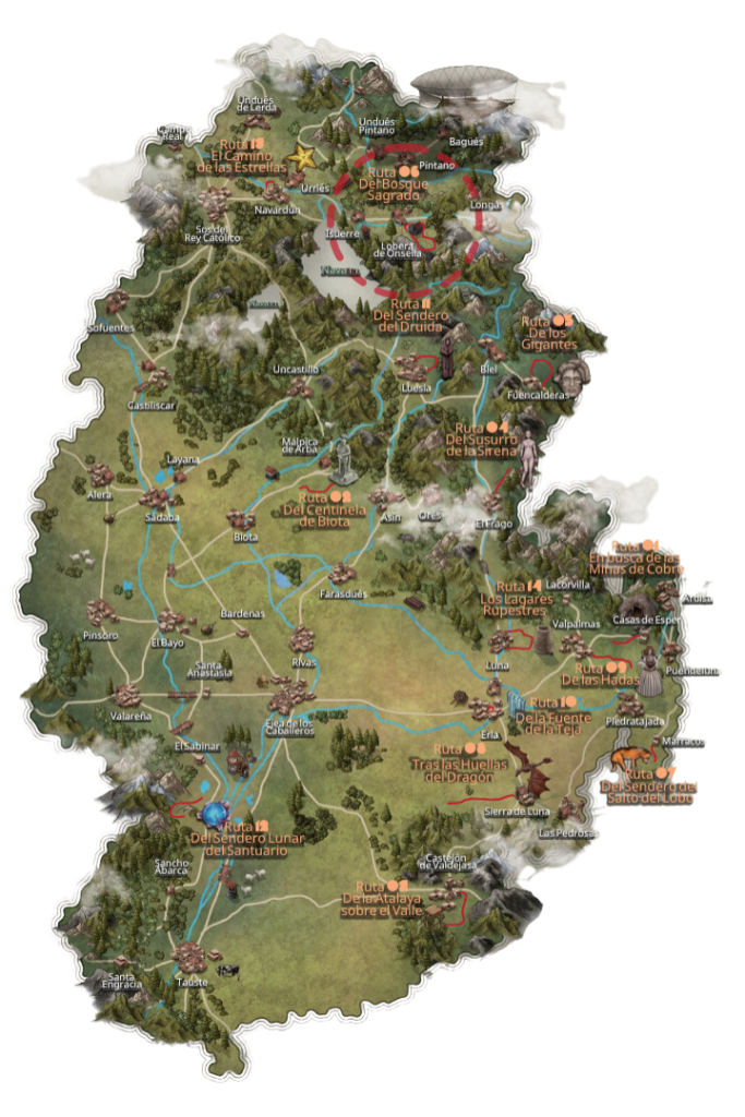 DÉJATE HECHIZAR EN LAS CINCO VILLAS LA MÁGIA ESTÁ OCULTA EN LAS CINCO VILLAS PERO AÚN PUEDESVIVIRLAS EN ESTAS 14 RUTAS EN LAS QUE DESCUBRIRÁS A LOS HABITANTESMÁGICOS DE NUESTRA TIERRA ENCUENTRA LOS PORTALES EN LAS RUTAS ENCONTRARÁS PORTALES. SI LOS DESCUBRES YTIENES SUERTE, LOS SERES MÁGICOS SE MOSTRARÁN. 06 RUTA LOBERA DE ONSELLA La Ruta del Bosque Sagrado MAPA ❖ RUTA ELIGE TU AVENTURA 14 RUTAS MÁGICAS PARA HACER EN FAMILIA A TRAVÉS DE ESTAS 14 RUTAS DESCUBRIRÁS DÓNDE SE ESCONDEN LAS SIRENAS, CÍCLOPES, HADAS, DUENDES Y MUCHOS SERES MÁGICOS QUE HABITAN EN LAS CINCO VILLAS. DESCARGA EL MAPA Consejos para una experiencia segura y agradable Mantén el entorno limpio Respeta la naturaleza No abandones el itinerario señalizado No enciendas fuego Utiliza calzado deportivo cómodo Número de emergencias Ropa adecuada No olvides llevar agua
