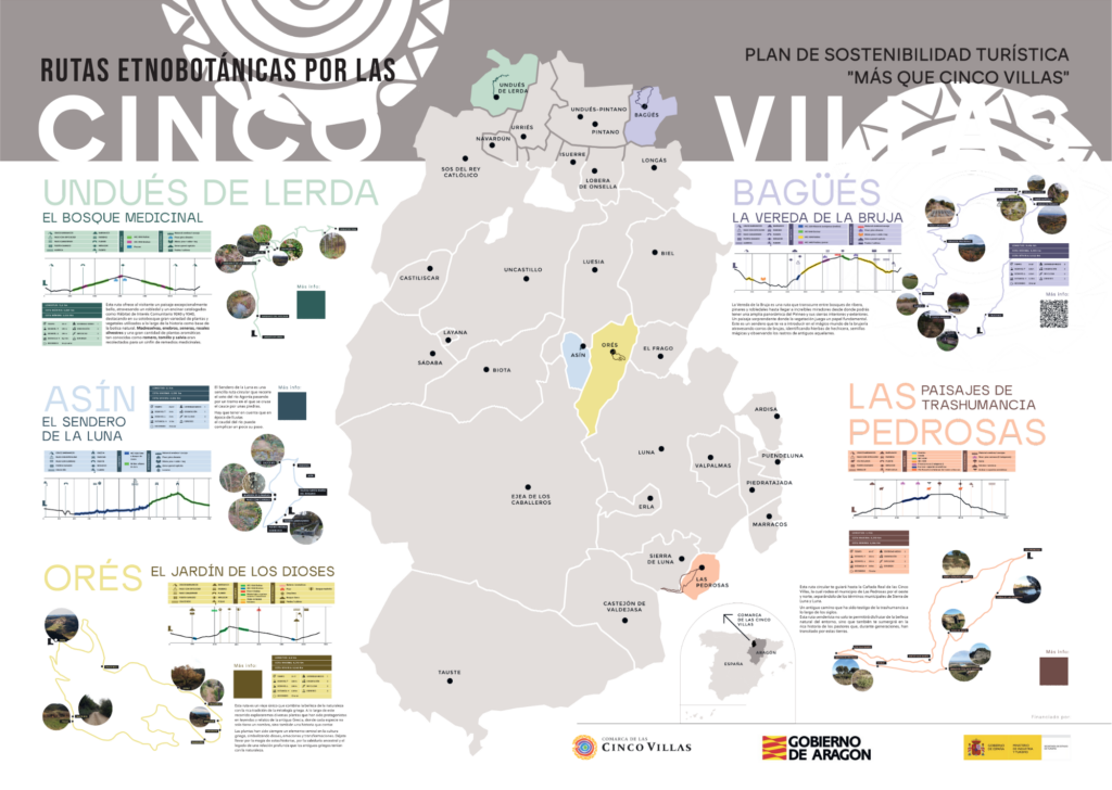 Las rutas etnobotánicas de la Comarca de las Cinco Villas invitan a descubrir el territorio a través de la relación histórica entre las personas y las plantas. A lo largo de cinco itinerarios en distintos municipios, el paisaje se convierte en un aula al aire libre donde conocer usos medicinales, tradicionales y simbólicos de la vegetación local. Bosques, senderos, barrancos y espacios abiertos muestran cómo la flora ha sido parte esencial de la vida rural, la cultura y la identidad del territorio. Estas rutas combinan naturaleza, patrimonio y conocimiento popular, ofreciendo una experiencia sostenible que conecta pasado y presente. Un recorrido para caminar con calma, observar y comprender el paisaje vivo de las Cinco Villas.